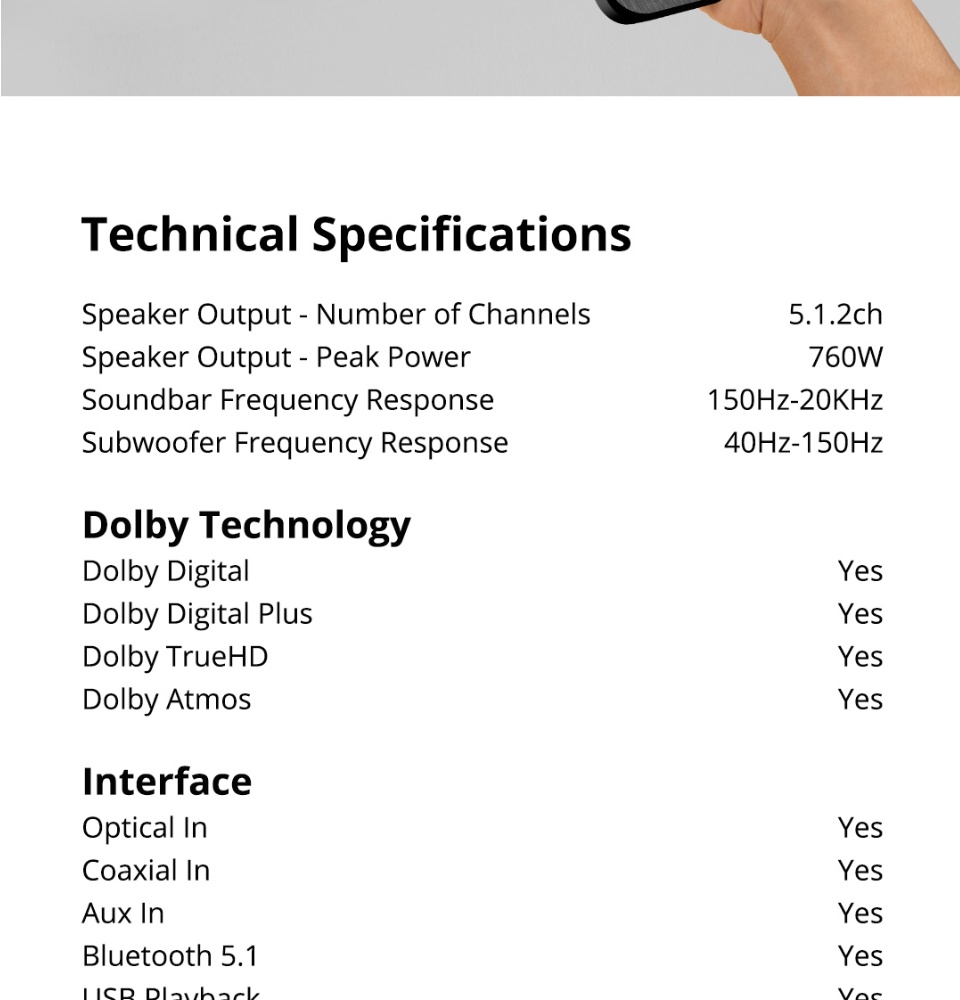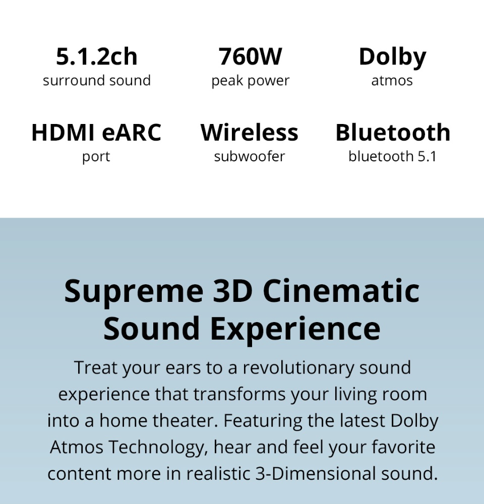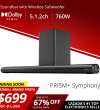 PRISM+ Symphony 5.1.2ch Soundbar with Dolby Atmos | 760W | Wireless Subwoofer | Wireless Music Streaming | Bluetooth 5.0